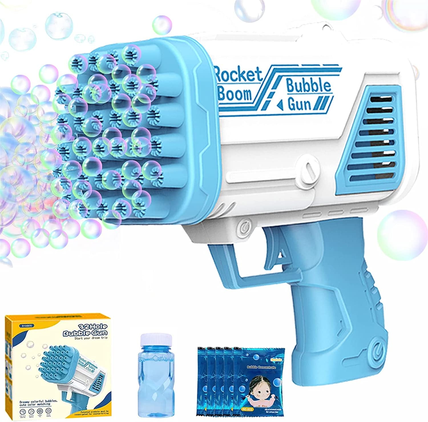 Bazooka Bubble Machine Gun | 32 HolesUnleash the Fun with the Bubble Bazooka Machine:🎉 Perfect for all occasions, from bubble-themed parties to camping trips and more.🌟 Features 32 bubble holes, blasting out over 2000 colorful bubbles per minute.💡 Four vibrant lights create stunning effects, day or night.🌈 Press the trigger...